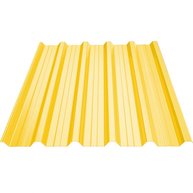 Товщина матеріалу – 0.45 мм, колір – жовтий RAL 1003. Ширина загальна 1115 мм, ширина корисна – 1080 мм, висота хвилі – 34 мм, довжина – від 200 до 10000 мм. Матеріал постачається від Arvedi (Італія), що гарантує якість продукції.