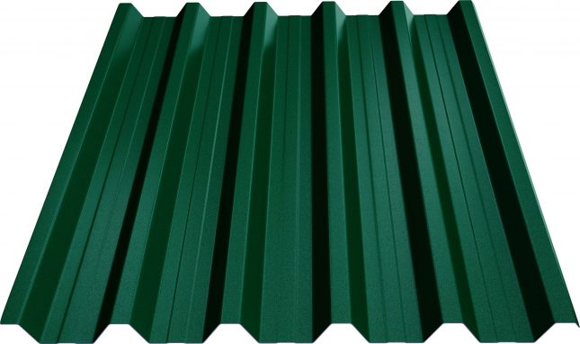 Металопрофіль Н44 має стійкість до вигинів та деформації, а також захищений від впливу ультрафіолетового проміння, вологи та інших факторів, що продовжує термін його служби. Товщина виробу – 0,45 мм, колір – зелений RAL 6005, покриття – цинк. Завдяки ширині загальній 1040 мм та корисній 1000 мм, він легко встановлюється та забезпечує надійний захист покрівлі від негоди.