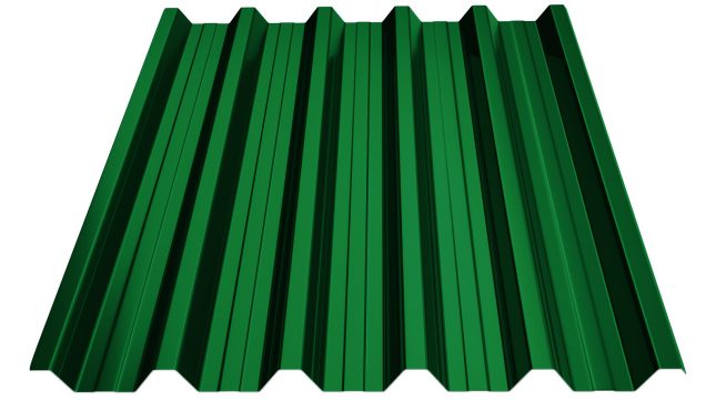 Товщина 0,50 мм, колір світло-зелений RAL 6002, ширина корисна 1000 мм, висота хвилі 44 мм. Довжина від 450 до 14000 мм. Постачальник матеріалу – Arcelor (Німеччина).