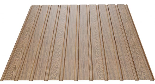 Профнастил ПС-10 0,50 Під дерево (сосна) від Bilka (Румунія) – ідеальний вибір для тих, хто шукає надійний та стильний матеріал для облицювання будівлі чи покрівлі. Він вирізняється чітко вираженим геометричним малюнком профілю, що дозволяє використовувати його як облицювальний декоративний матеріал для різноманітних архітектурних рішень.