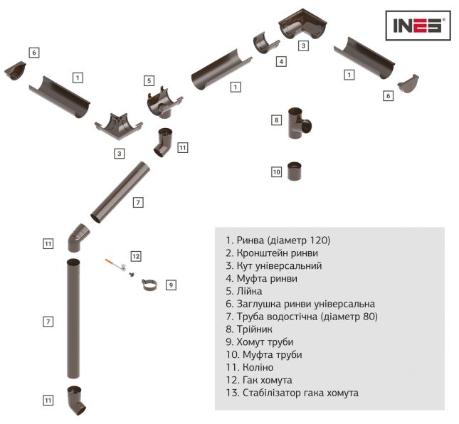 Водостічна система Ines 120 Коричнева RAL 8017 Глянцева